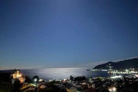 月明りに照らされる多賀湾